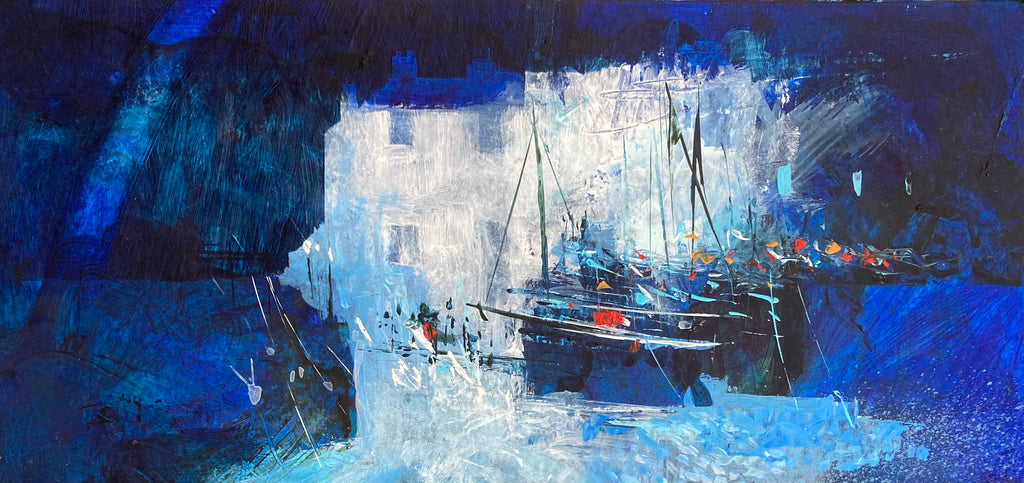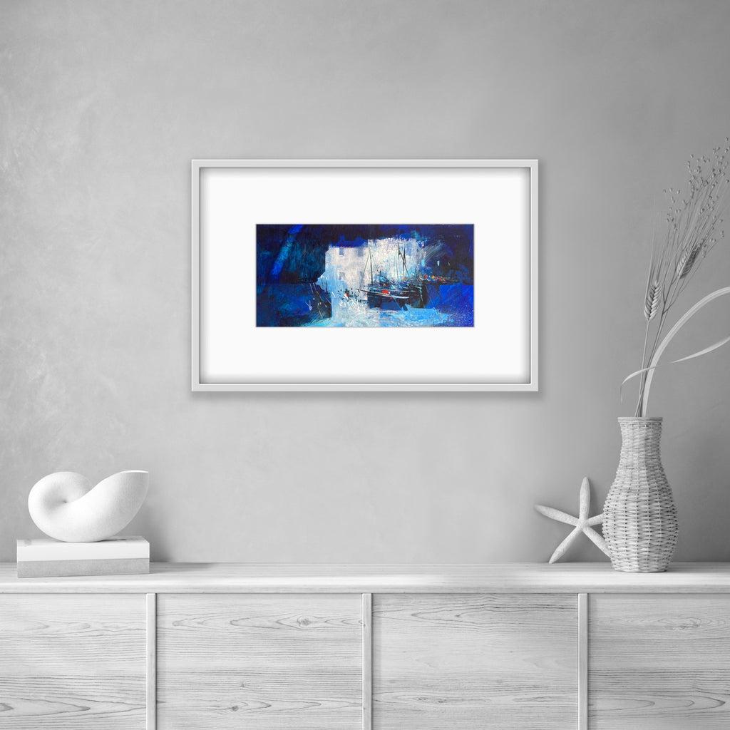 Original artwork, mixed media on board, doubled mounted and framed in tulip.