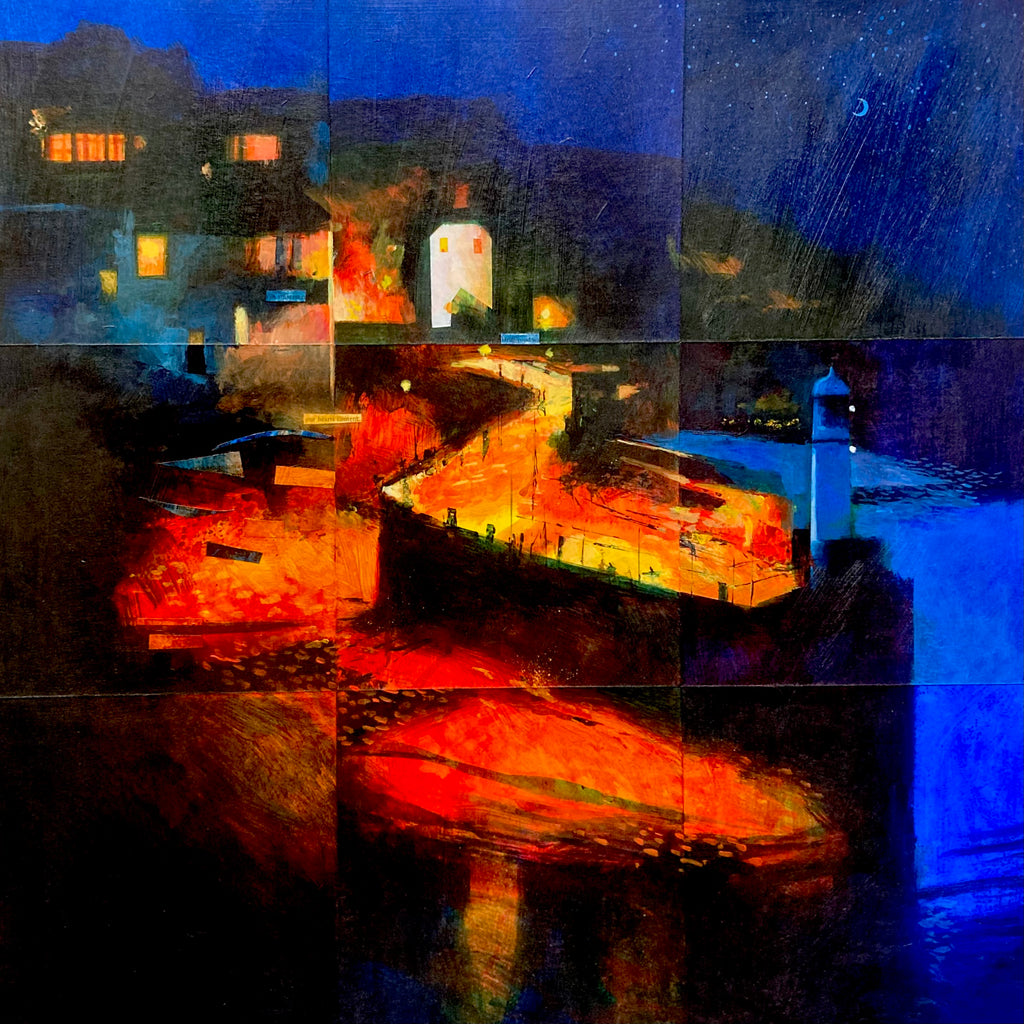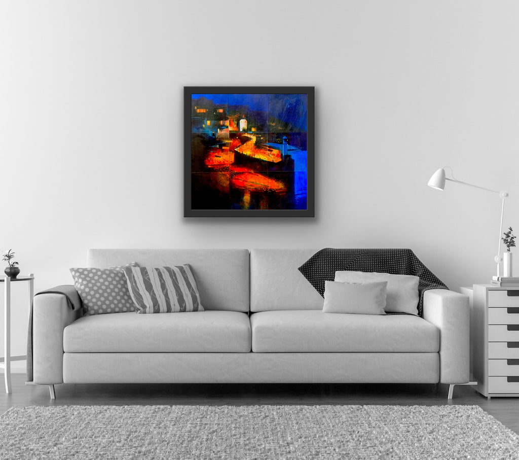 Original artwork, mixed media on board, framed in tulip.