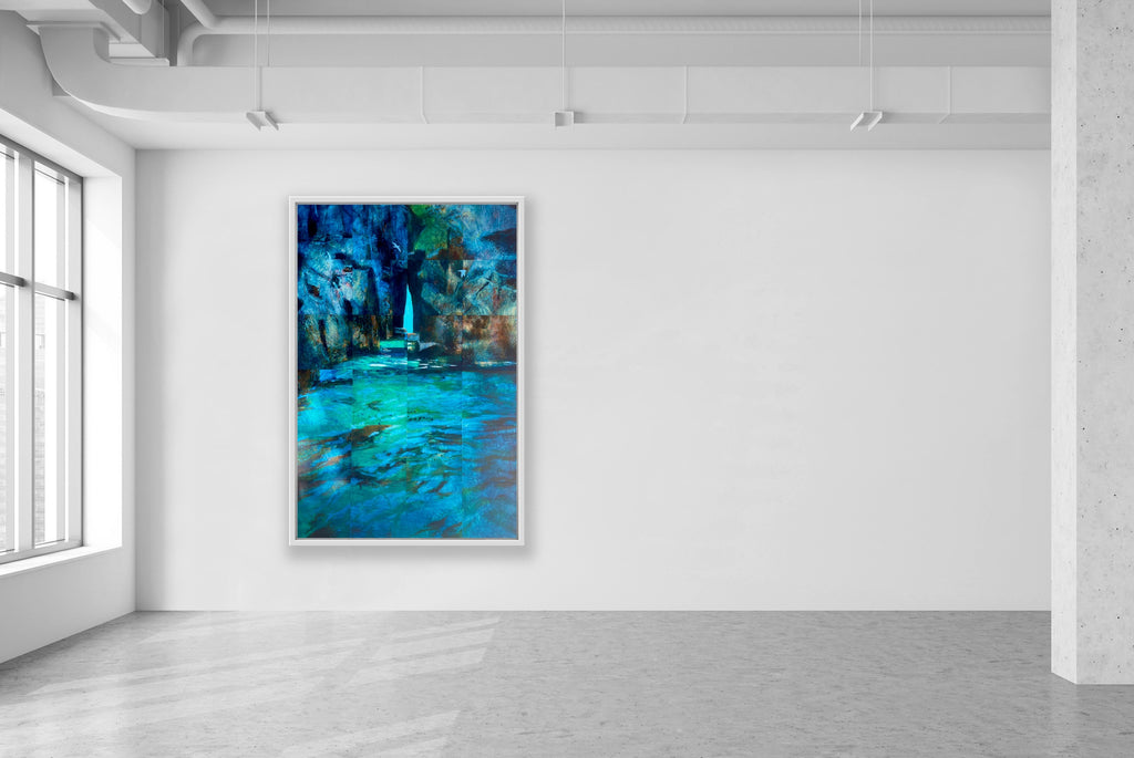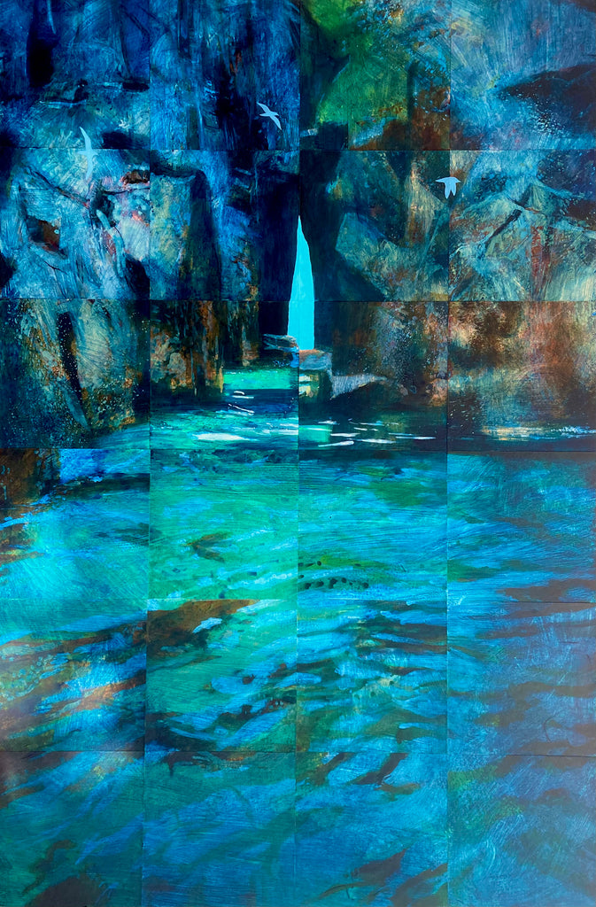 Original artwork, mixed media on board, doubled mounted and framed in tulip.