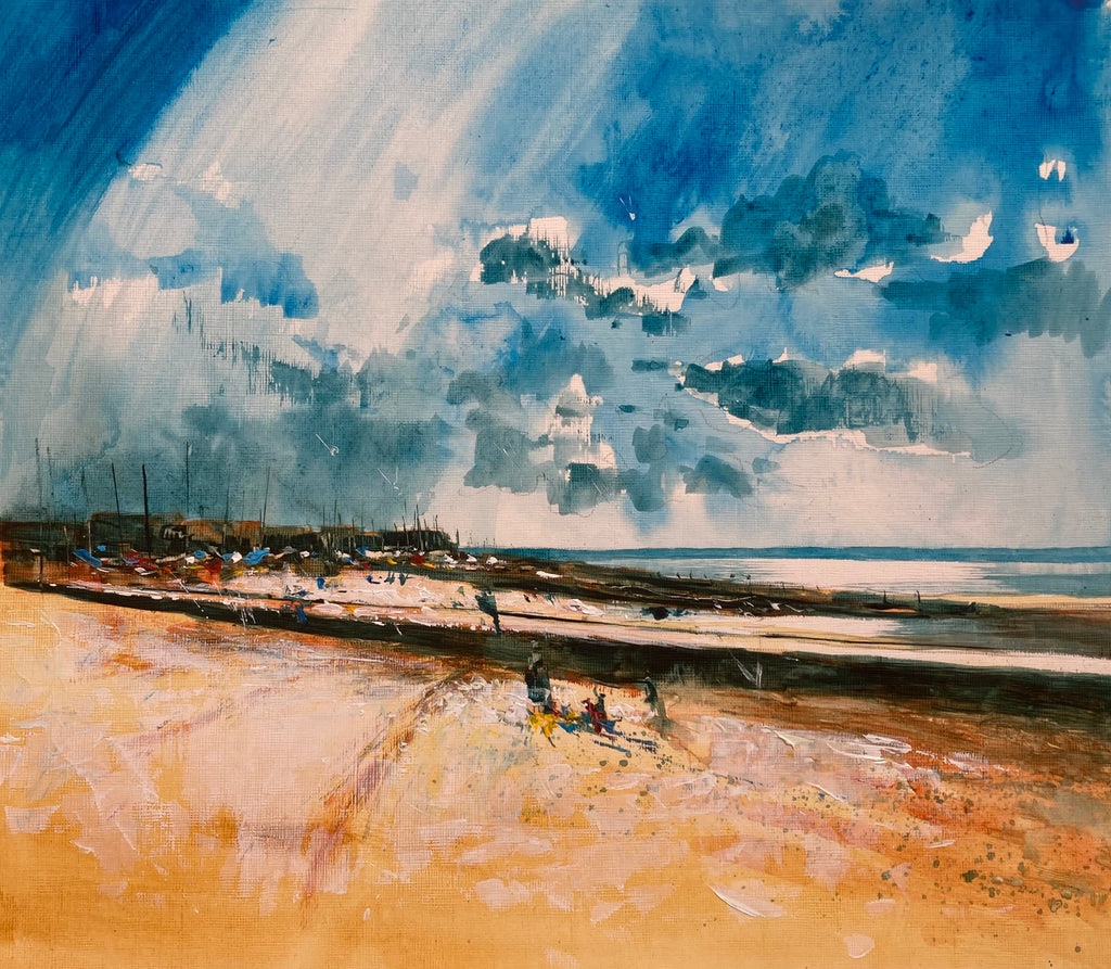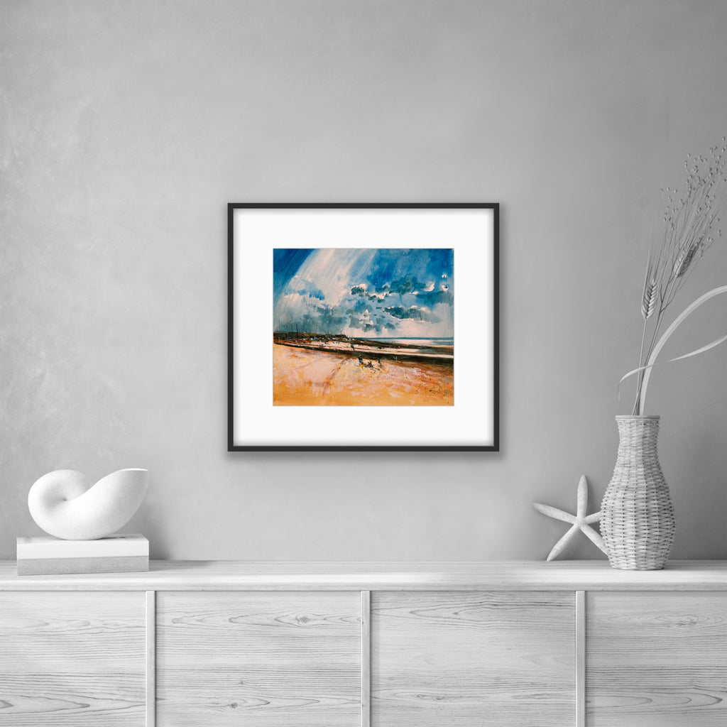 Original artwork, mixed media on board, doubled mounted and framed in tulip.