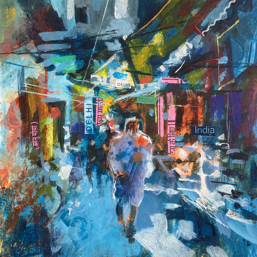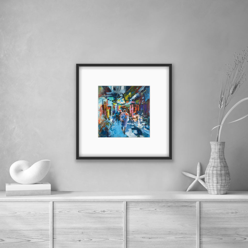 Double mounted, glazed and framed in hand finished black tulip 14” x 14”